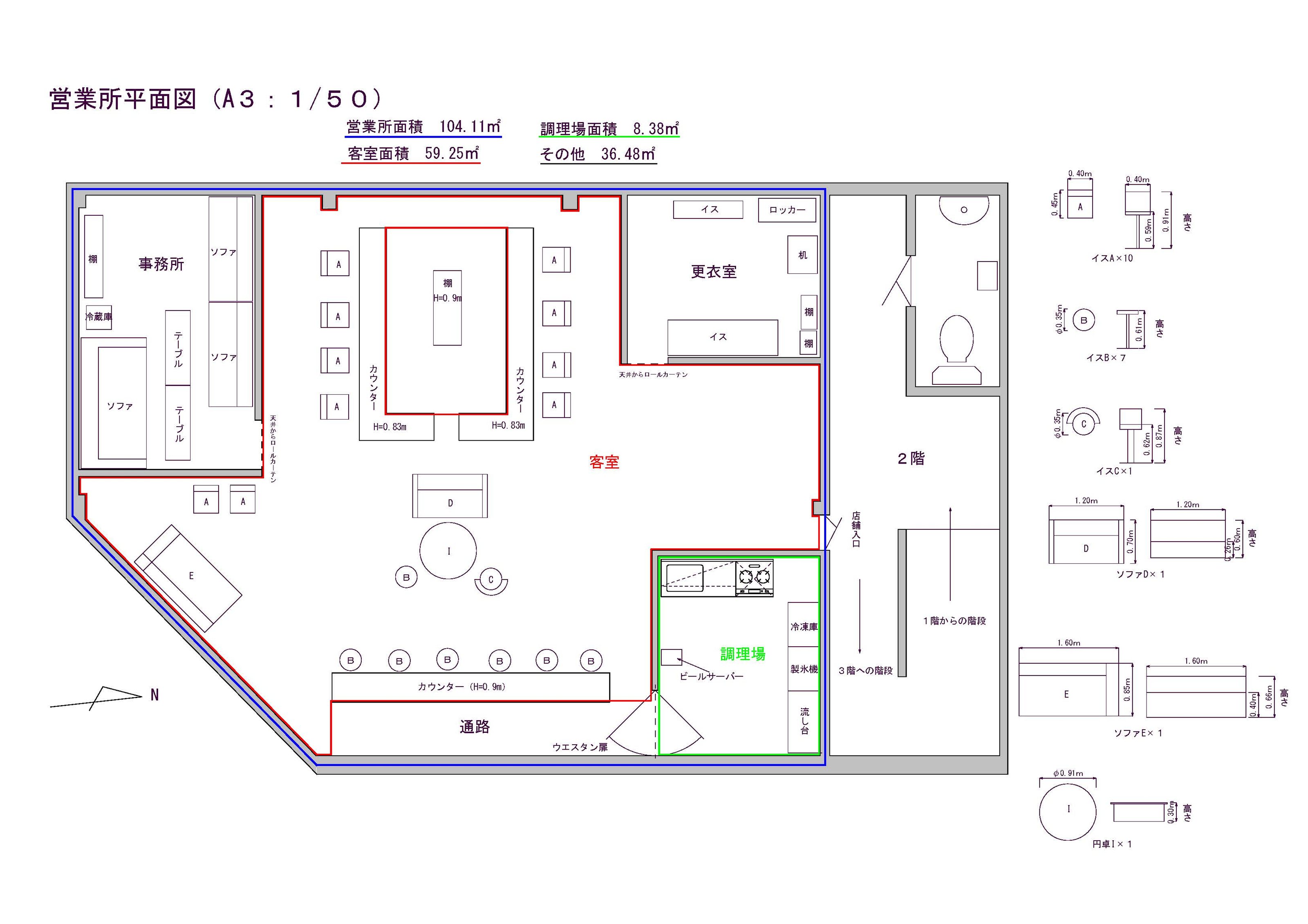| 深夜酒類提供飲食店届用現場図面作成 | ~70㎡ | 7万円 |